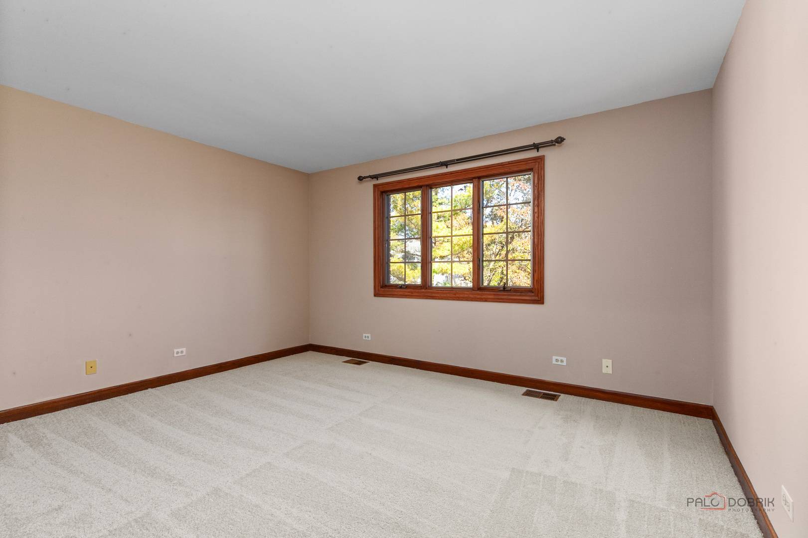 Welcome to this stunning 4 + 1 bedroom, 4-bath all-brick home located in a quiet cul-de-sac on a private road within the award-winning Adlai E. Stevenson High School District. Nestled on a beautifully wooded 1.019-acre lot, this home offers the perfect blend of elegance, comfort, and privacy. NEW CARPET all throughout second level and family room on main level!!! A grand two-story foyer invites you in, setting the tone for the exceptional living spaces throughout. The formal living room features a striking fireplace, while the elegant dining room is ideal for hosting memorable gatherings. The gourmet kitchen is a chef's dream, complete with a large island, granite countertops, stainless steel appliances including BRAND NEW refrigerator, cooktop, and microwave, a pantry closet, and a charming garden window. The eating area provides access to the expansive deck with a gazebo-perfect for entertaining or enjoying peaceful outdoor moments. Relax in the cozy family room, showcasing a floor-to-ceiling stone fireplace, vaulted ceiling with exposed beams and skylights, a wet bar, and access to the backyard. A convenient home office with French doors, full bath, and laundry room complete the main level. Upstairs, the luxurious primary suite offers a spacious sitting area, vaulted ceilings, and a spa-like ensuite bath with dual vanities, a whirlpool tub, separate shower, and two large walk-in closets. Three additional generously sized bedrooms and a full bath provide ample space for family and guests. The finished basement expands your living options with a large rec room, full bath, bedroom (perfect for potential gym, home theater, or playroom as well), and abundant storage. Located within walking distance to Historic Downtown Long Grove, this home truly has it all-space, style, location, and top-rated schools. Don't miss your chance to make it yours!